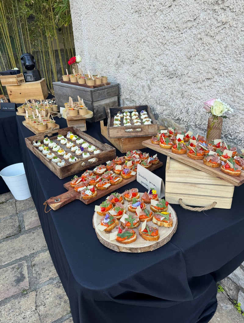 Nos cocktails et réceptions sont tout aussi impressionnants. Que ce soit pour une fête d'anniversaire, une soirée d'entreprise ou une célébration privée, nous offrons une variété de canapés raffinés, de boissons savoureuses et de mises en scène élégantes. Chaque événement est unique et adapté aux besoins de nos clients.